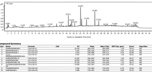通过精确质量、同位素丰度比、同位素精确质量比及MS/MS四维信息关联分析给予推测分子量、分子式,部分化合物可通过谱库鉴定给予结构式。
