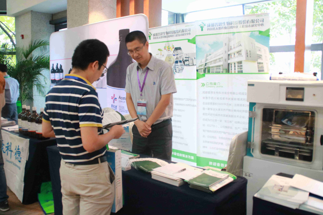 茶歇间,普思生物展台所展示的天然化合物产品和技术,也引起了专家们浓厚的兴趣,纷纷驻足了解,向我们的工作人员一边咨询相关技术服务内容,一边交流分离纯化领域学术经验,并表示期待后续更多的交流与合作。