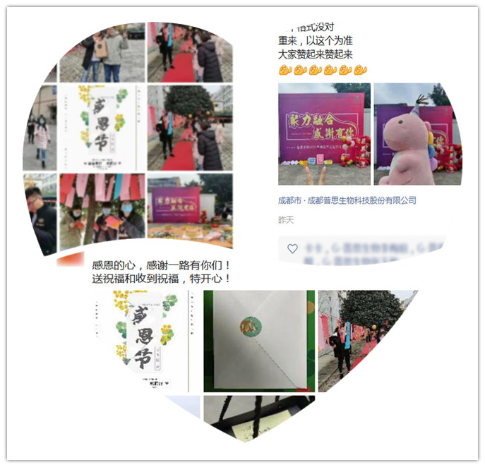 按要求发送主题“感恩的心,感谢有你”的朋友圈进行集赞,排名前10将获奖同事将获得精美礼品一份。朋友圈集赞活动不仅是为了获得精美礼品,更是感恩同事,朋友,家人的默默付出。