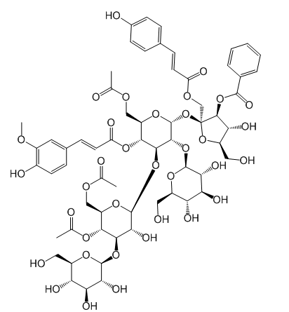 远志寡糖酯类成分主要以蔗糖为共同母核,以多种类型的糖苷键与鼠李素或葡萄糖连接构成寡糖,最后与有机酸 ( 乙酸、苯甲酸类和苯丙烯酸类 ) 形成糖酯类。研究发现,三糖以上的糖酯仅在远志属植物中被发现,因此寡糖酯类成分是远志属植物特有成分。
