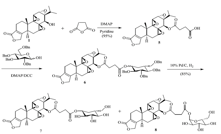 稀有成分提取成本高昂,以易得的天然产物为先导化合物,结合结构与生物活性关系和代谢研究,进一步进行结构修饰和类似物合成,以提高药效和降低毒性,往往从一个有效的天然先导化合物可以衍生出一系列新药。