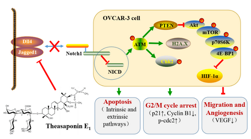 图1 茶皂素E1对OVCAR-3人卵巢癌细胞抗癌作用的示意图[1]