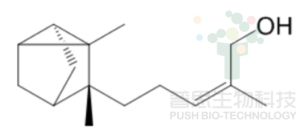 用途:檀香特征成分之一及沉香香味的来源之一,呈现香甜、温和的气味,具有抗高血糖、抗肿瘤、镇痛、抗炎、抗菌、缓解焦虑失眠等活性;有助于清除自由基,保护心肌细胞和组织不受氧化损伤;加速伤口愈合,促进皮肤再生,减少红血丝,用于抗敏类化妆品和提升化妆品品质