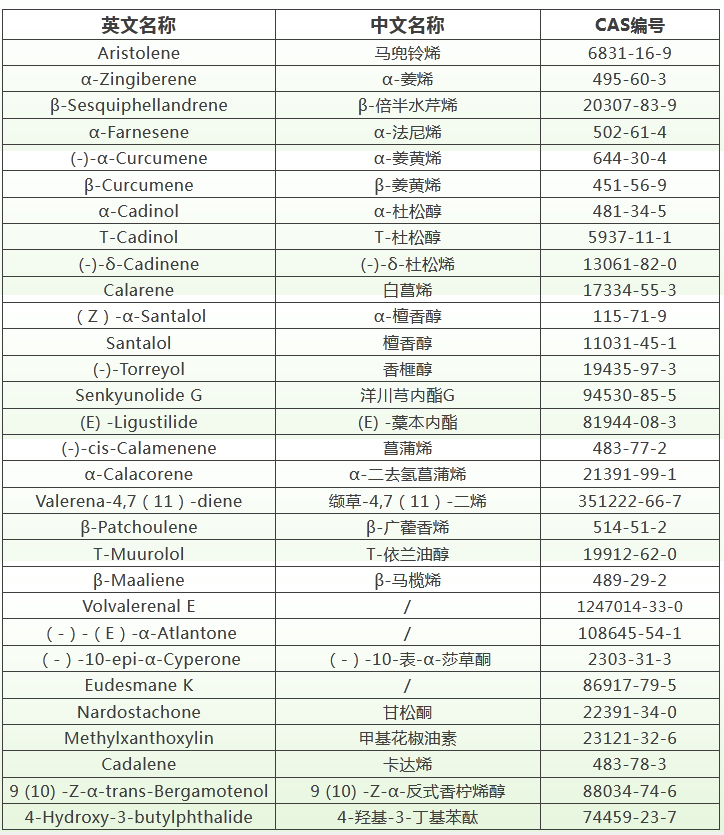 用途:白鲜皮、甘松、北五味子、含笑多种植物的主要挥发性成分,具有抗氧化、抗炎、抗菌、抗肿瘤等活性