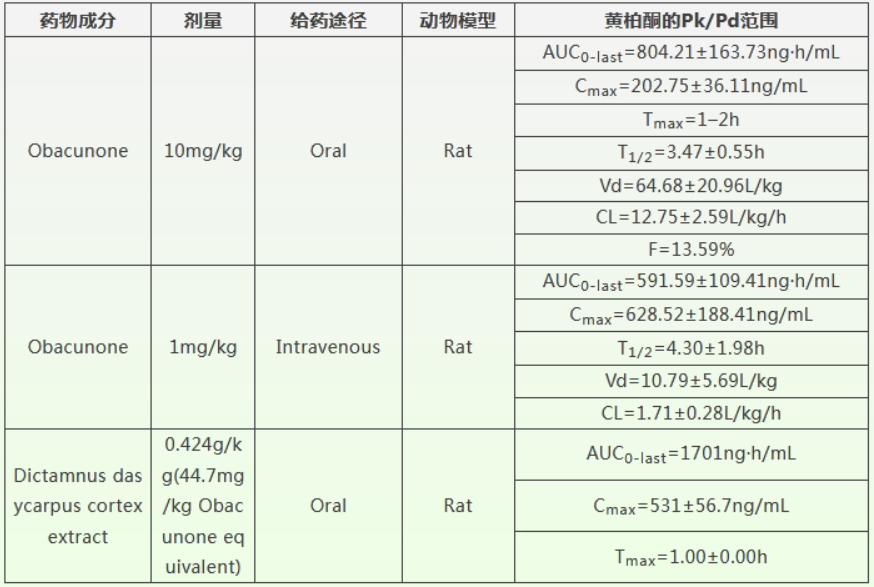 柠檬苦素类化合物黄柏酮:药理活性作用与药代动力学特征