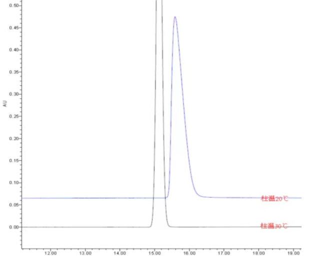 原因:柱温设置过低,会使流动相粘度增加,对照品在柱内的扩散和传递速度变慢,可能会导致峰前沿。