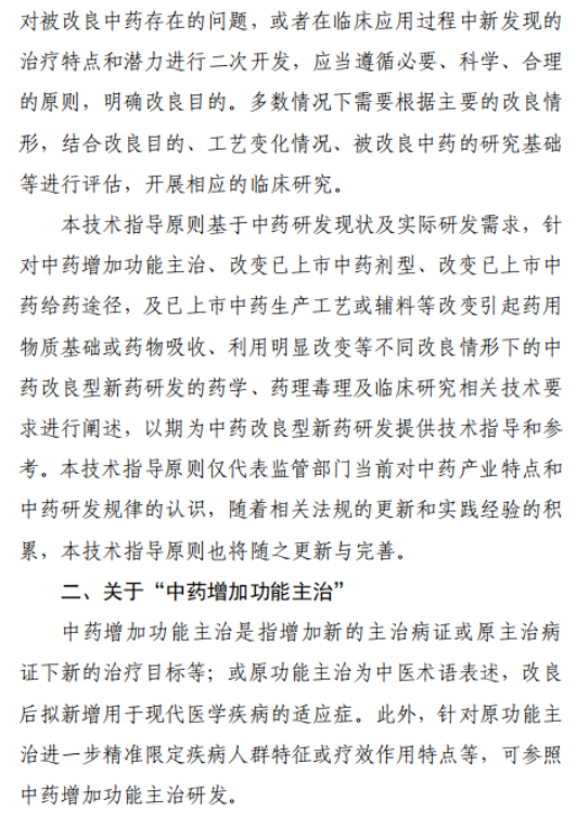 为进一步落实《中共中央 国务院关于促进中医药传承创新发展的意见》《国家药品监督管理局关于促进中药传承创新发展的实施意见》等对于鼓励中药二次开发、促进中药产业高质量发展的要求,指导申请人开展中药改良型新药的研究,促进中医药传承精华、守正创新,药审中心组织制定了《中药改良型新药研究技术指导原则(试行)》(见附件)。根据《国家药监局综合司关于印发药品技术指导原则发布程序的通知》(药监综药管〔2020〕9号)要求,经国家药品监督管理局审查同意,现予发布,自发布之日起施行。