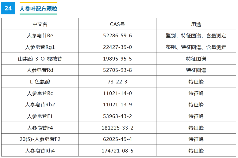 针对以下2024年第一期27个中药配方颗粒国家药品标准中的中药对照品,普思生物均现货供应,当天发货。