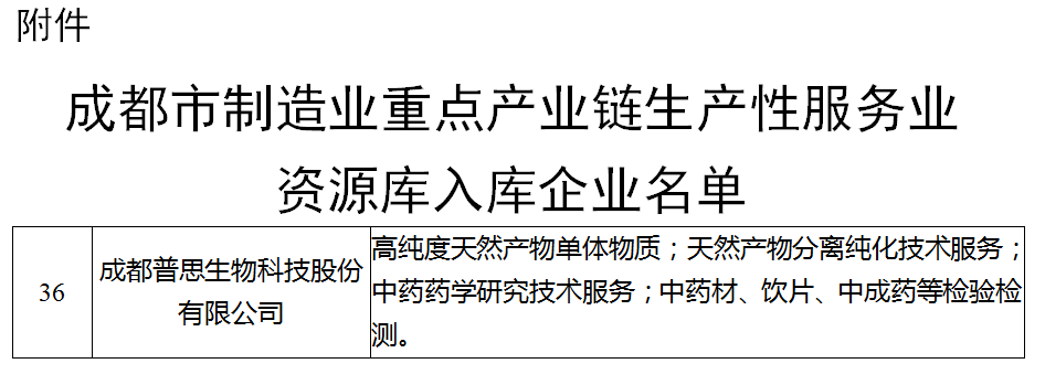 喜报!成都普思生物入选成都市制造业重点产业链生产性服务业资源库