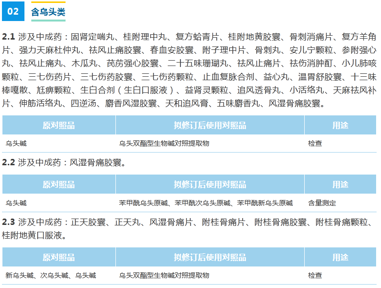 重磅更新丨国家药典委员会拟修订《中国药典》2020年版一部中使用乌头碱对照品、士的宁对照品的54个中成药品种标准