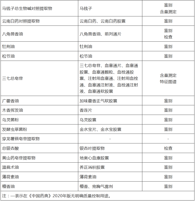 随着近年来研究的发展和增多以及中药配方颗粒的广泛使用,现在有越来越多的中药品种开始使用对照提取物,目前《中国药典》2020年版已经收载使用28种对照提取物,部分省市的中药配方颗粒标准也有不少品种开始使用相应的对照提取物,使中药材(饮片)及其复方的质量控制更符合中医药理论,也完善了其质量控制评价体系。